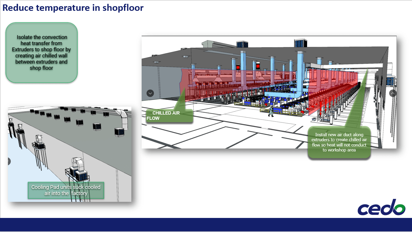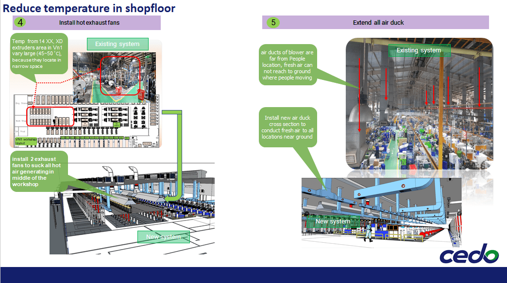 => Cần đưa ra Phương án CẢI TẠO THÔNG GIÓ NHÀ XƯỞNG ĐƯA NHIỆT ĐỘ KHU VỰC LÀM VIỆC 32-35 ĐỘ C