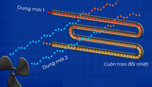 Bộ trao đổi nhiệt HVAC cuộn ở dạng đơn giản nhất của chúng sử dụng một hoặc nhiều ống chạy qua lại nhiều lần. Các ống tách hai chất lỏng. Một chất lỏng chảy bên trong ống và một chất lỏng khác chảy ra bên ngoài. Hãy xem xét một ví dụ về hệ thống sưởi. Nhiệt được truyền từ chất lỏng bên trong nóng vào thành ống thông qua sự đối lưu, sau đó nó dẫn qua thành ống sang phía bên kia và chất lỏng bên ngoài mang điều này đi qua sự đối lưu. sau thời gian sử dụng xảy ra hỏng hóc