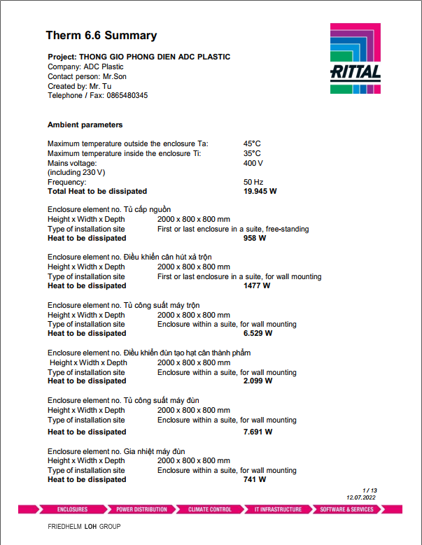 - Mỗi phòng điện có 10 tủ điện; lượng nhiệt 5 tủ : 19.945w